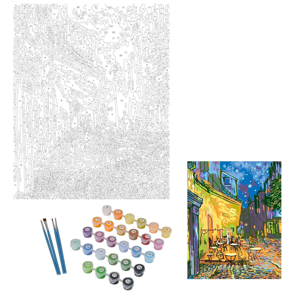This coloring set inspired by the famous work of "Café Terrace in the Evening" offers the opportunity to create a copy of the famous work, using the coloring by numbers technique. With a size of 40x50 cm, this set is ideal for those who want to explore this unique style and color one of the most famous paintings in the world. The set contains everything you need to create a perfect copy: high-quality paint, a suitable frame and a detailed guide that guides every step of the coloring process. This set is a great opportunity for young artists and art enthusiasts to create a wonderful work of art that will attract attention.