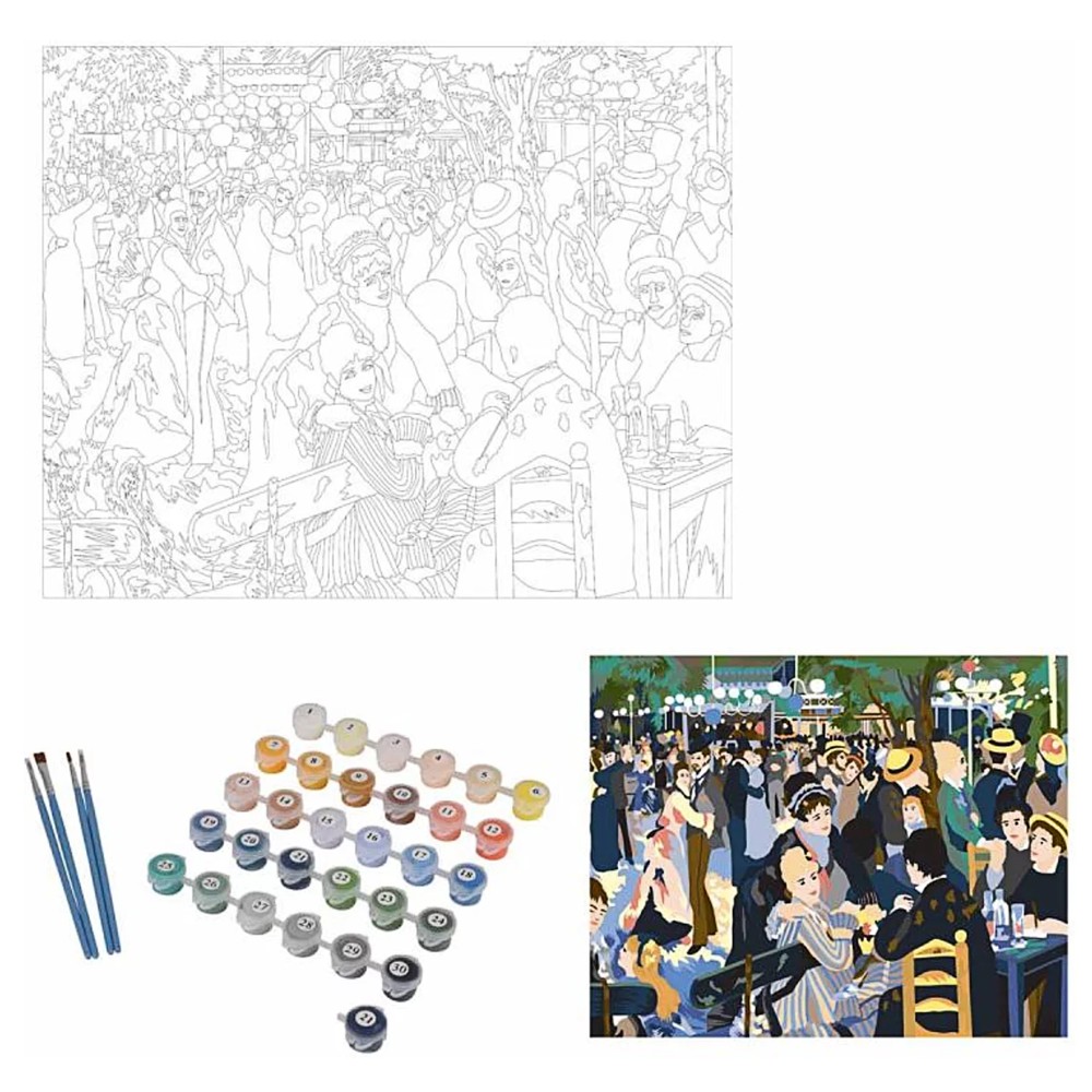 This coloring set inspired by the famous work of "The Ball at the Moulin de la Galette" offers the opportunity to create a copy of the famous work, using the coloring by numbers technique. With a size of 40x50 cm, this set is ideal for those who want to explore this unique style and color one of the most famous paintings in the world. The set contains everything you need to create a perfect copy: high-quality paint, a suitable frame and a detailed guide that guides every step of the coloring process. This set is a great opportunity for young artists and art enthusiasts to create a wonderful work of art that will attract attention.