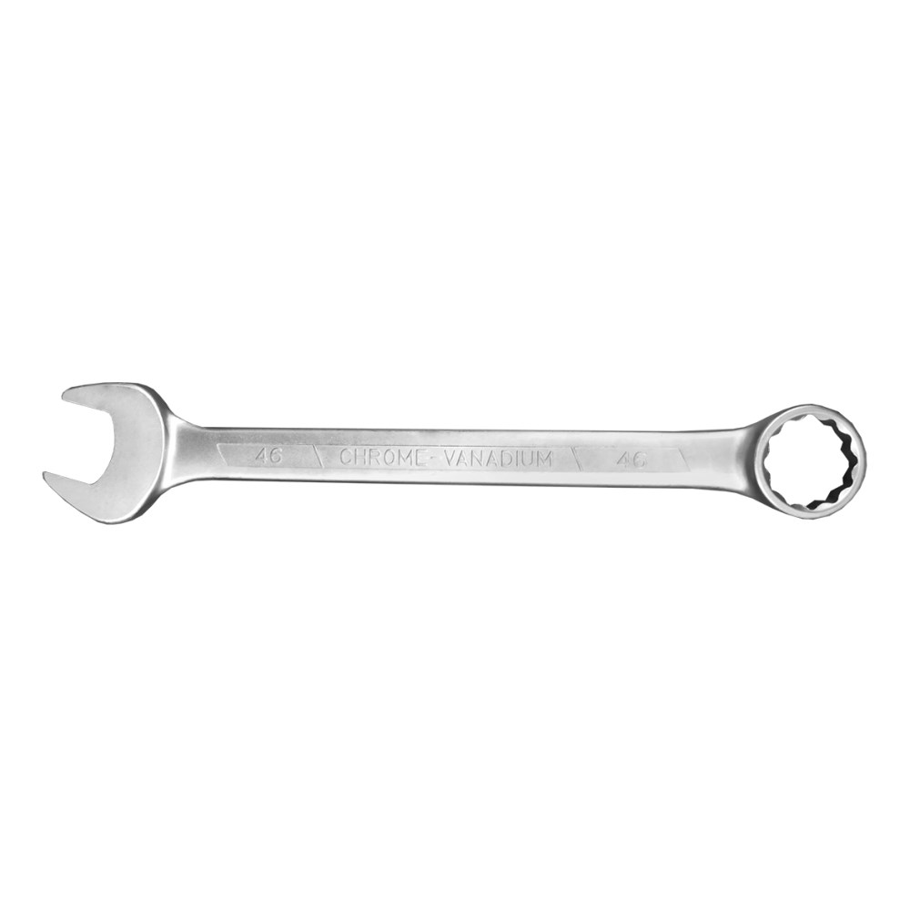 Combination Wrench 46mm is made of chrome vanadium steel for durability. The finish is excellent for resistance to corrosion. This wrench features a 12-point style on the closed end. This wrench is easy to clean and includes large size markings that are simple to read.