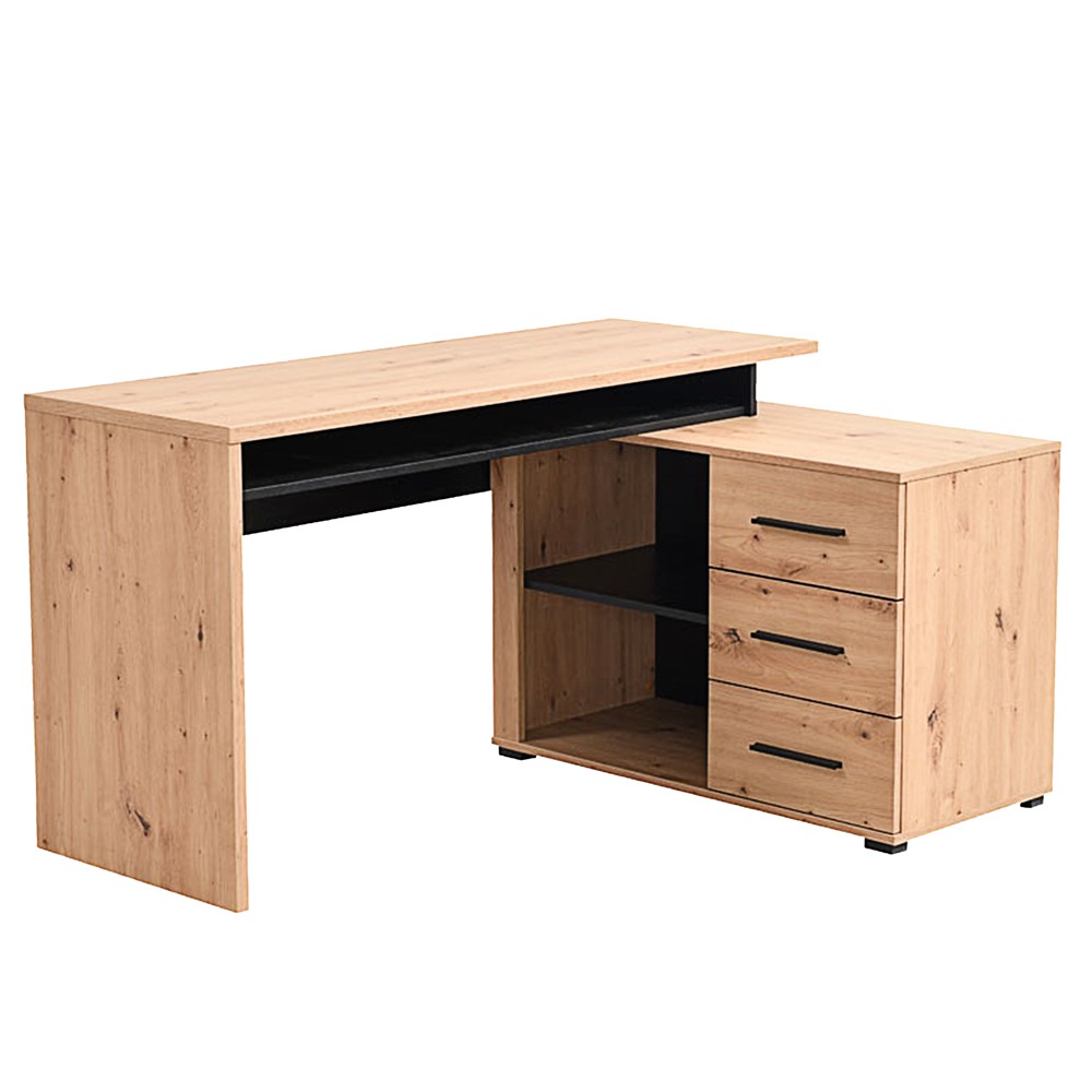 Computer desk ARHIMED, in a combination of artisan oak decor and black wood, presents a basic detail for perfectly functional working space where everything should reflect order and harmonious organization. The practical composition of desktop, drawer system and the closed wing section provides sufficient space for storing and sorting all important items and documents.