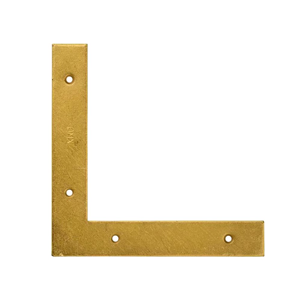 Corner plate for wooden parts, made of galvanized zinc material, with dimensions of 15x15x2.5x0.25 cm, in golden color, equipped with an outer coating with zinc powder, which protects it against corrosion and rust. It can be used to enable the best possible connection of wooden elements with each other, as well as it can be used as an assembling equipment for chests, wooden boxes, wooden frames, etc.