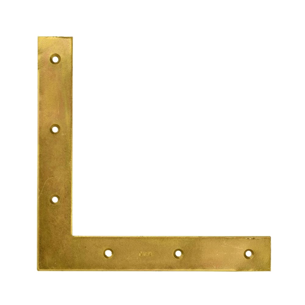 Corner plate for wooden parts, made of galvanized zinc material, with dimensions of 20x20x3x0.25 cm, in golden color, equipped with an outer coating with zinc powder, which protects it against corrosion and rust. It can be used to enable the best possible connection of wooden elements with each other, as well as it can be used as an assembling equipment for chests, wooden boxes, wooden frames, etc.