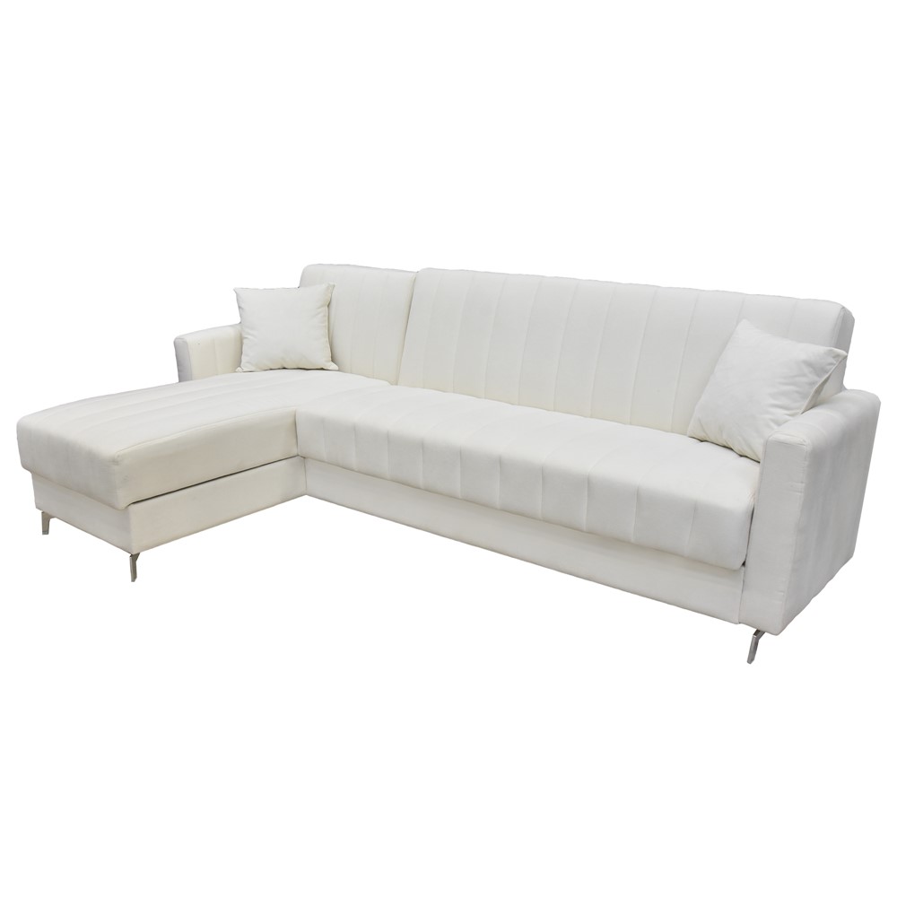 Enjoy a welcoming and contemporary living space with this corner sofa. A modern, simple design allows you to convert a corner sofa into a large sofa bed in seconds. This comfortable sofa bed will be perfect for everyone who looks for a functional but elegant piece of furniture. This corner sofa model is an ideal choice for small rooms, as it can be easily turned into a bed (108x208 cm).