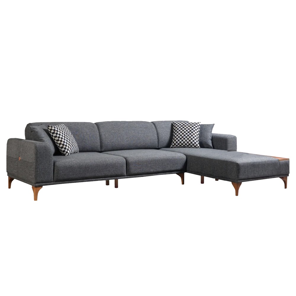 Corner sofa, Fashion, right, textile upholstery, wooden legs, grey, 300x85xH90 cm; 185x85xH90 cm