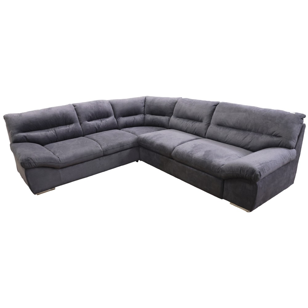 Corner sofa, with canape on the left side, with measurements of 290x254 cm, with textile upholstery, in dark blue color. The supporting structure is composed of durable beech and spruce wood bars, as well as melamine material, without formaldehyde content. The medium-soft inner padding consists of foam material, PVC free, with reinforcing steel springs and static chrome legs. The sofa seat can be opened allowing it to turn into a bed, with a surface area of 204x121 cm. The upholstery material is stain resistant and can be easily cleaned with a damp cloth. The minimalistic and functional design makes this product an optimal choice for your interior environments.