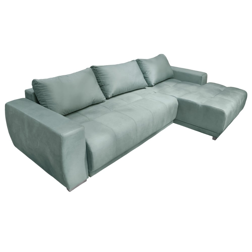 Corner sofa, with canape on the right side, with measurements of 280x204x66(87) cm, with textile upholstery, in taupe green color. The supporting structure is composed of durable beech and spruce wood bars, as well as melamine material, without formaldehyde content. The medium-soft inner padding consists of foam material, PVC free, with reinforcing steel springs and static chrome legs. The sofa seat can be opened allowing it to turn into a bed, with a surface area of 230x130 cm. The upholstery material is stain resistant and can be easily cleaned with a damp cloth. The minimalistic and functional design makes this product an optimal choice for your interior environments.