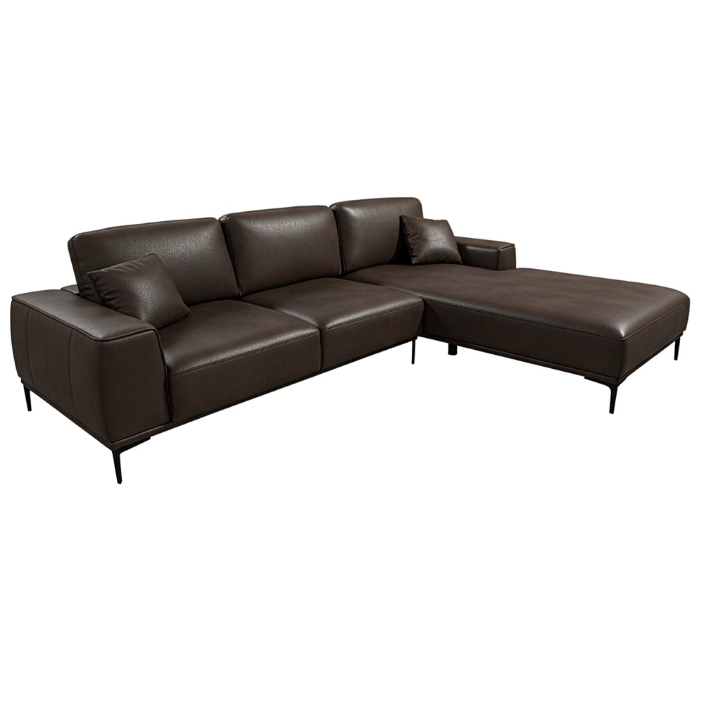 Corner sofa, right, leather upholstery, dark brown, 290x211xH103 cm