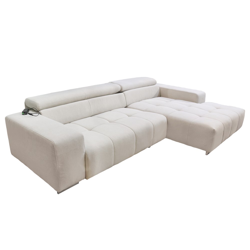 Corner sofa, right, Orion, electric, textile upholstery, beige, 307x176 cm