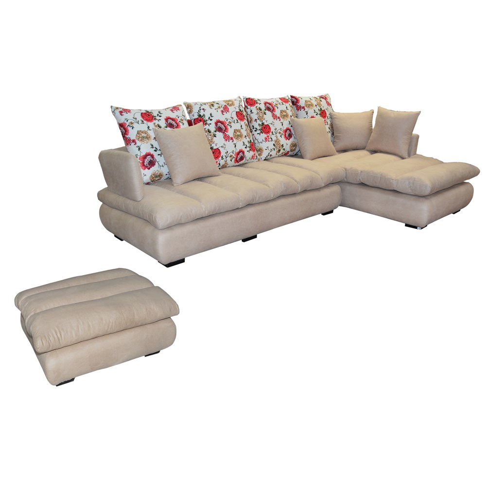 Fabulous Modern Contemporary Designer Corner Sofa. The sofa is upholstered in a Italian high density textile finish. This corner sofa is made on a sturdy frame with heavy foam padding and covered in luxury textile for that totally relaxing feeling. This elegantly designed sofa is artistically hand crafted to produce an attractive, luxurious and contoured piece which will compliment any living space. Beautiful and stylish, Corner Sofa will provide a comfy place for you and your guests to sit back and relax. With its welcoming and cosy appearance, this corner sofa will be the perfect centrepiece for your living room. This tasteful combination creates a fresh and appealing look which will brighten up your living room. Ottoman pouffe: 100x85xH45 cm