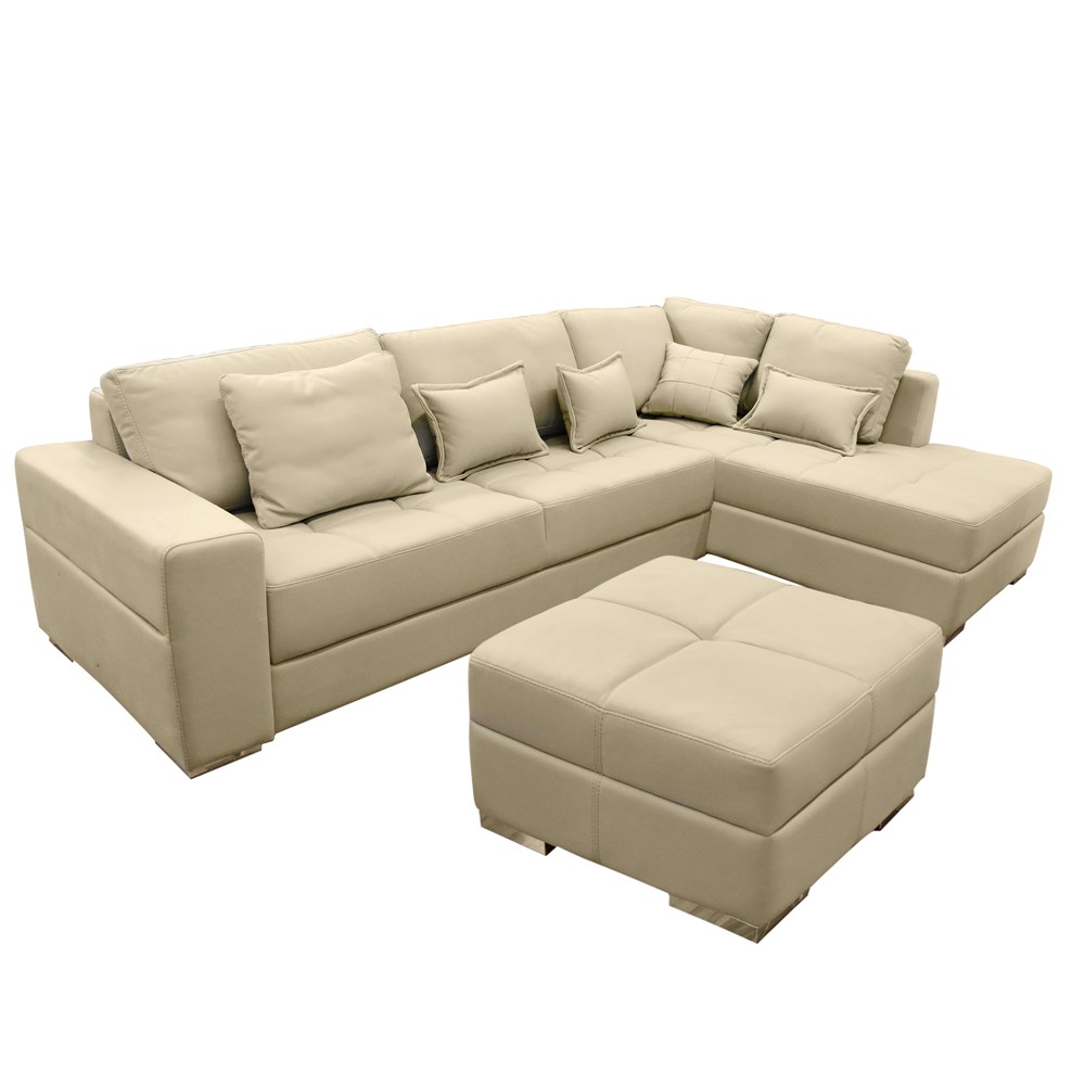 Corner sofa with stool, right, DEA, wooden frame, textile upholstery, beige, Corner sofa: 290x190xH70 cm; Pupa: 68x68xH40 cm