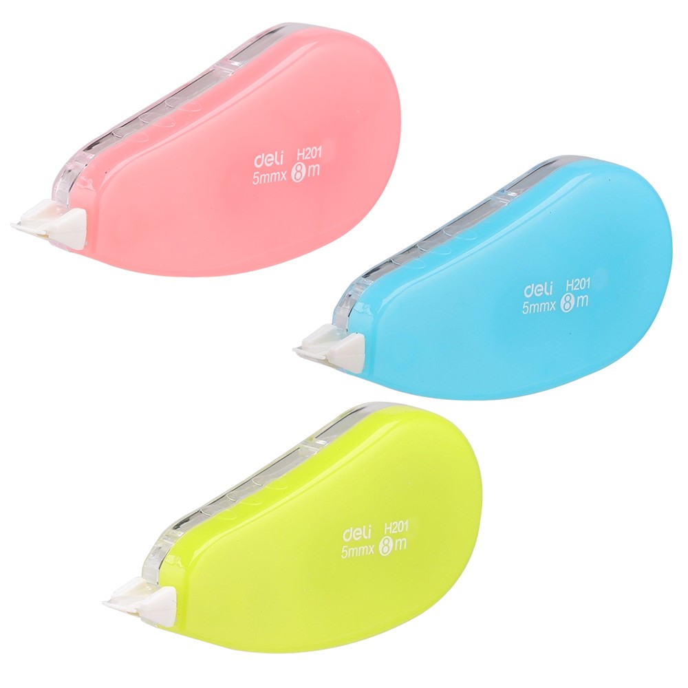 The Deli correction tape is designed to provide a clean and quick erasure of writing errors. With an attractive design and pastel colors, it is suitable for use in schools, offices and at home.