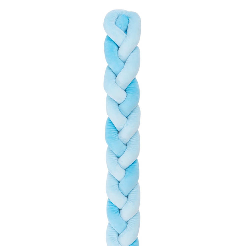 Side of the bed made of 100% very soft and high-quality polyester material with fiber filling. It is combined with two colors, white and blue, with a quality connection. It has a length of 180 cm and a width of 15 cm. Thanks to this sideboard, the child's room will look colorful, and their bed will be more complete.