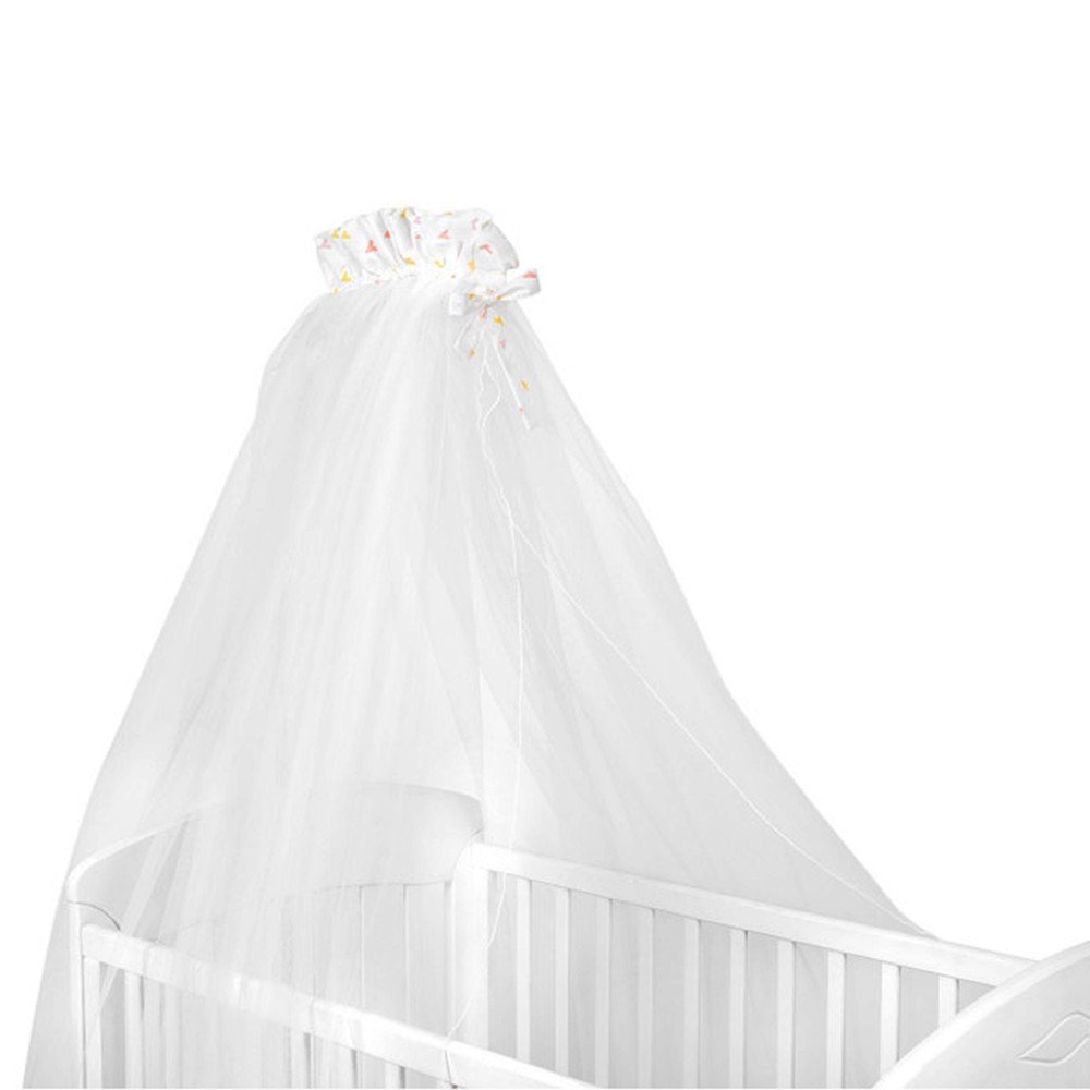 Crib for baby beds, from tulle material, in white color. It has a size of 200x480 cm. It is used in baby beds as a decorative accessory, or to protect children from mosquitoes during the summer season.