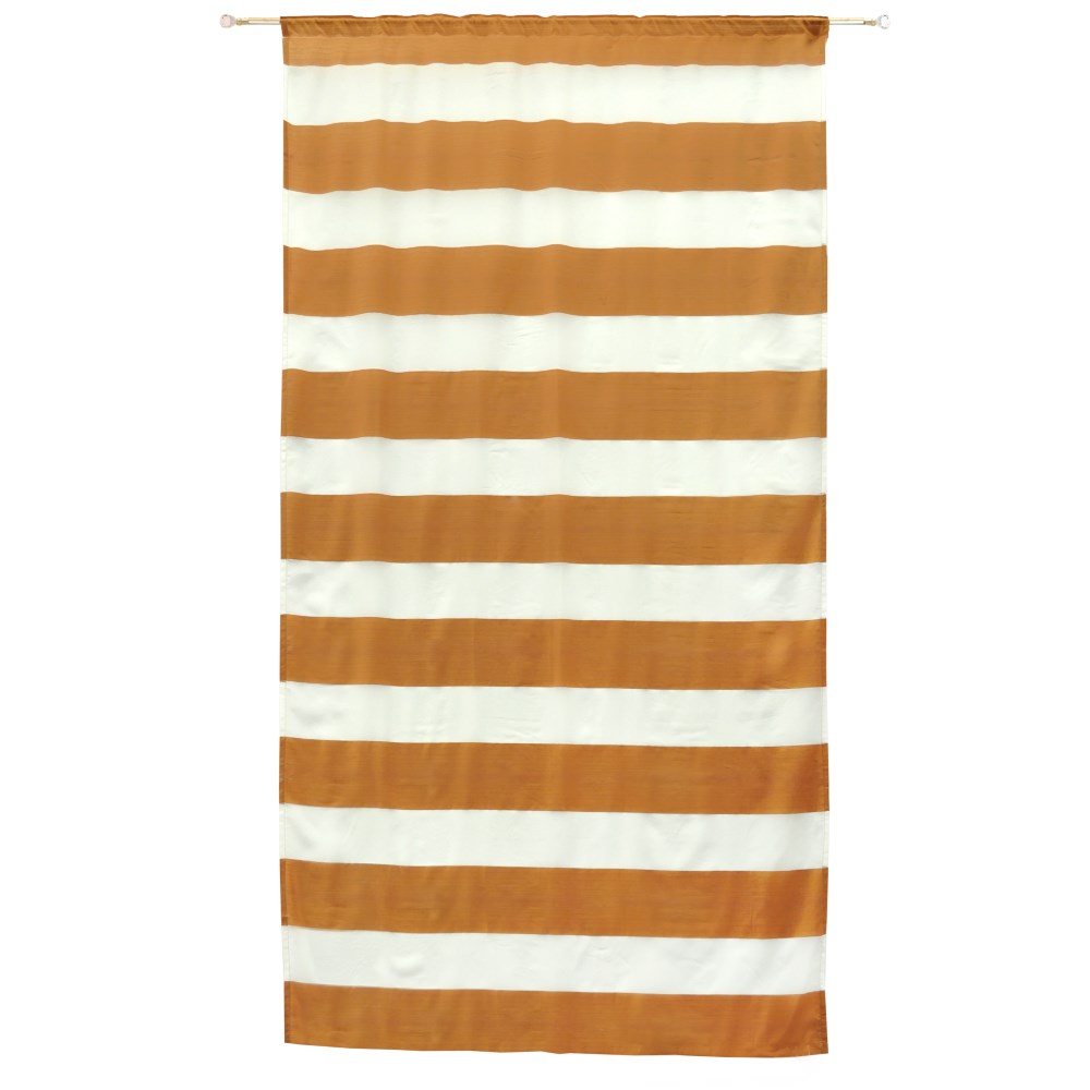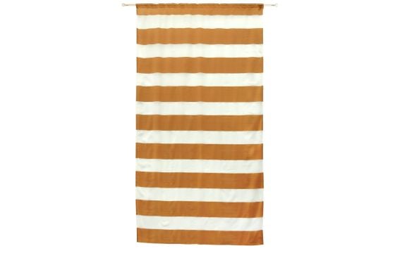 Polyester material gives this product a silky gloss and horizontal clamps combination of strong colors that make an interesting contrast white and orange makes this product easily adaptable to modern environment, mostly white. Personalize your environment residential with colors, style and refinement that orange curtain with white tape offers.