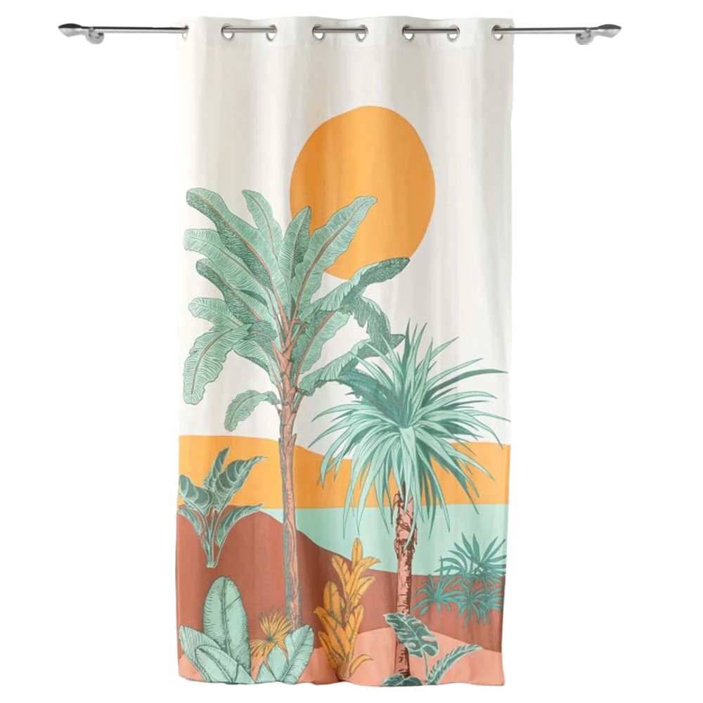 Curtain with eyelets, 100% cotton, white with palmanova design, 140x260 cm