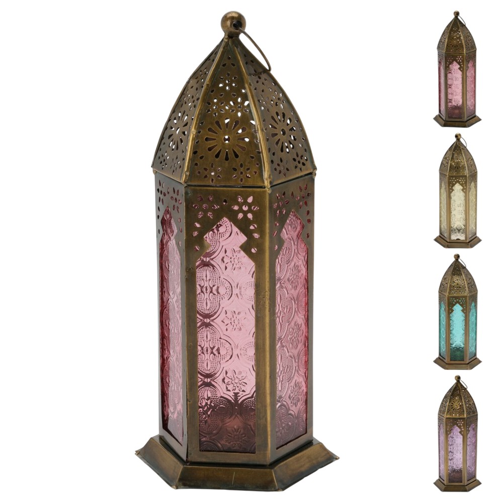 Decoration lantern, metal, glass, various, H29 x L13 x W13 cm