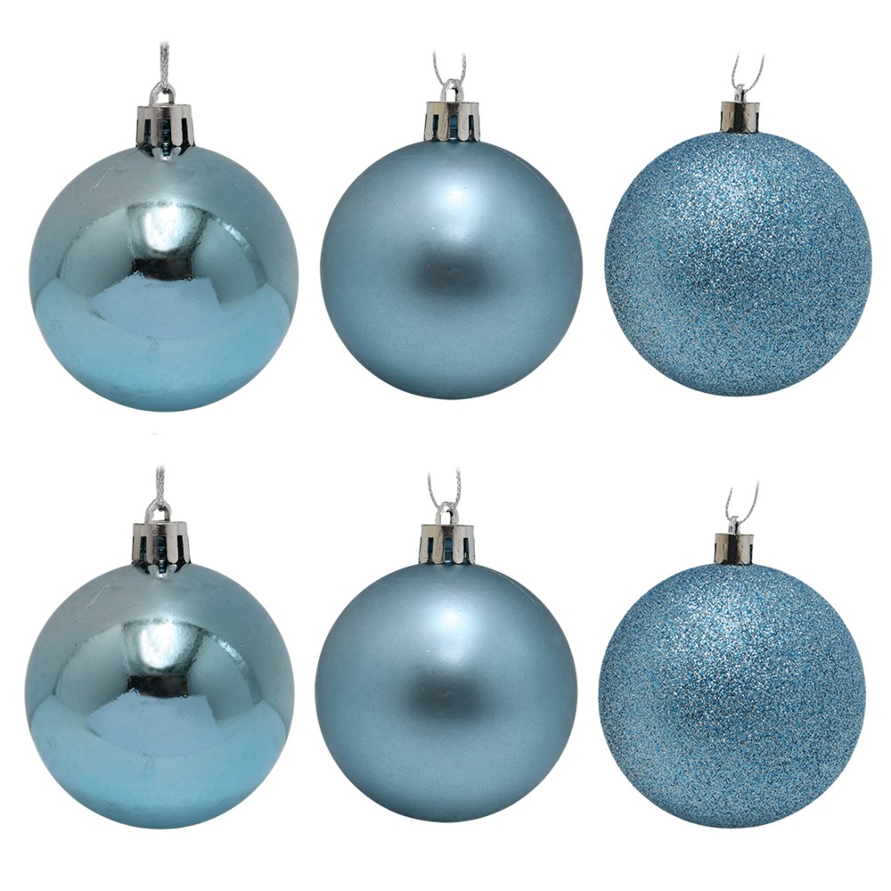 Decorative balls (pk 6), plastic, sky blue color, 3 models, 8 cm