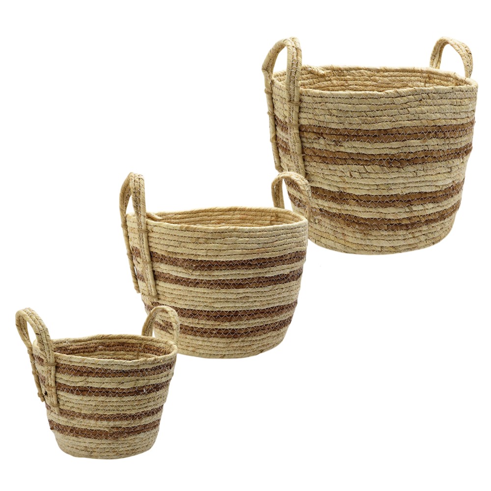 This set of storage baskets offers a convenient and stylish solution to organize various spaces in the home, adding an attractive and organized touch to your living space. The baskets are made of seagrass, a durable and easy-to-use material. Baskets are ideal for storing and organizing anything from small clothing, accessories, or other household items