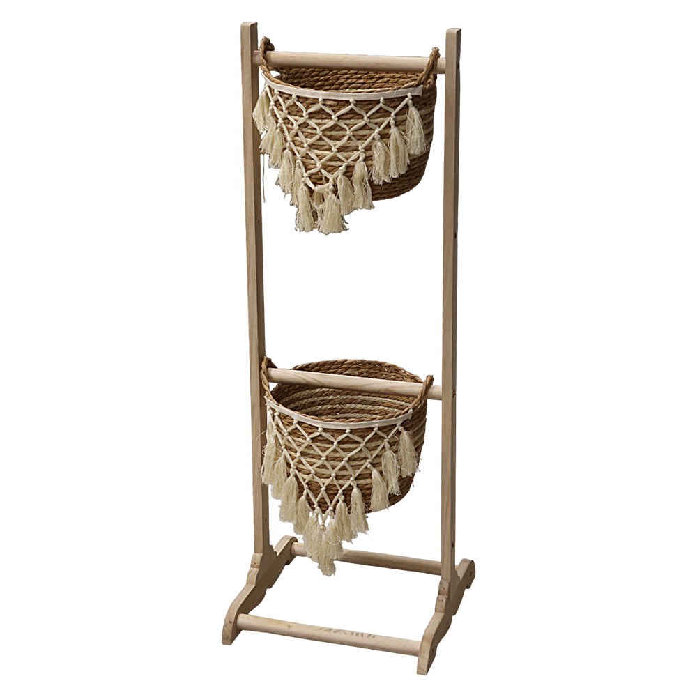 The decorative basket with wooden structure and straw material is a very stylish choice for lovers of the bohemian style. It does not only come in the form of a product with decorative purposes but also has different functions as you can keep your items in the spaces of the three baskets. You can also create different compositions in your spaces with artificial flowers. The natural brown color gives the idea of ​​a boho style, and the straw material makes it practical and easy to use. You can use it in different exhibitions or in different rooms. Add an elegant and very fine touch to your spaces. It will fit very well with your furnishing style due to its minimalist lines that make it aesthetically very pleasant. The dimensions of the basket are 35x35xH102 cm.