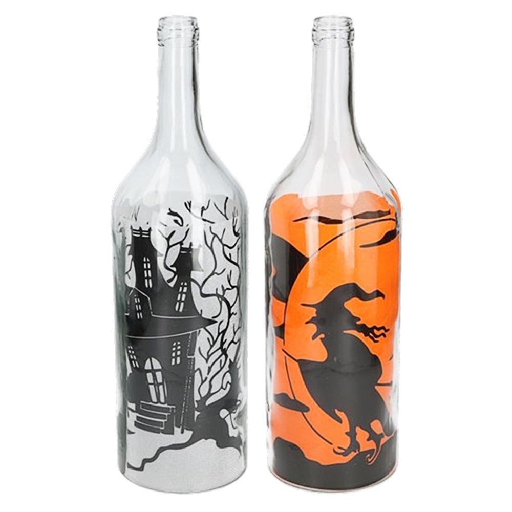 Decorative glass bottle with lighting. It serves as a decoration for Halloween and has 20 led lights.