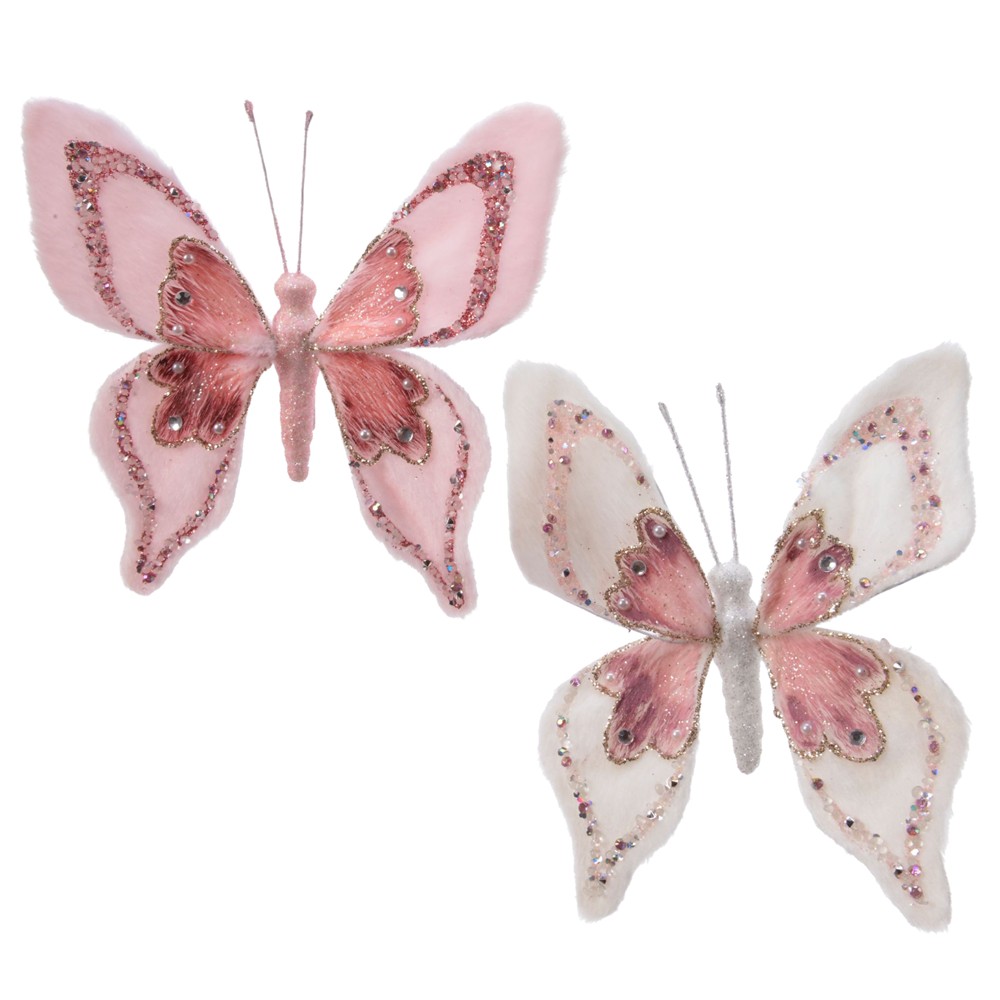 Decorative butterfly with clip, polyester, different colors, 14 cm