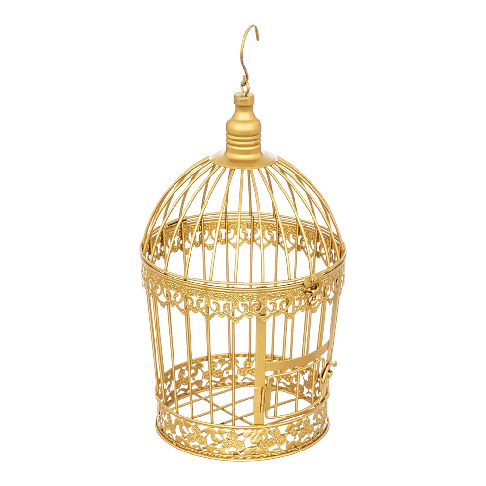 ntroducing an elegant decorative cage in gold color that will add elegance and unique charm to any environment. Made of high-quality metal, this cage has a refined design and solid construction. Thanks to the decorative details, it is a perfect decorative element for classic and modern environments. This cage is equipped with a hook that allows for easy hanging, allowing for a variety of adjustments. The cage can be used as a stylish flower cover, candlestick or simply as a stand-alone decoration.
