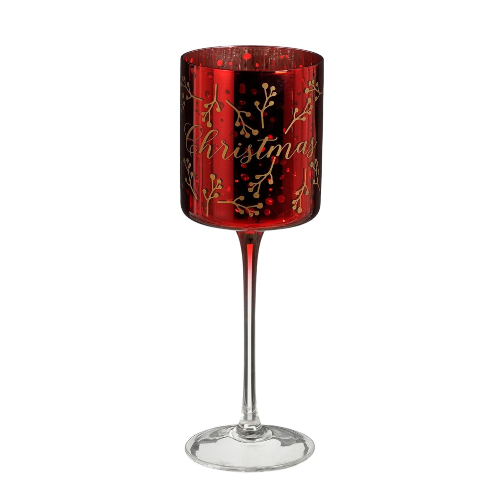 Decorative candle holder, glass, red H20xD7 cm