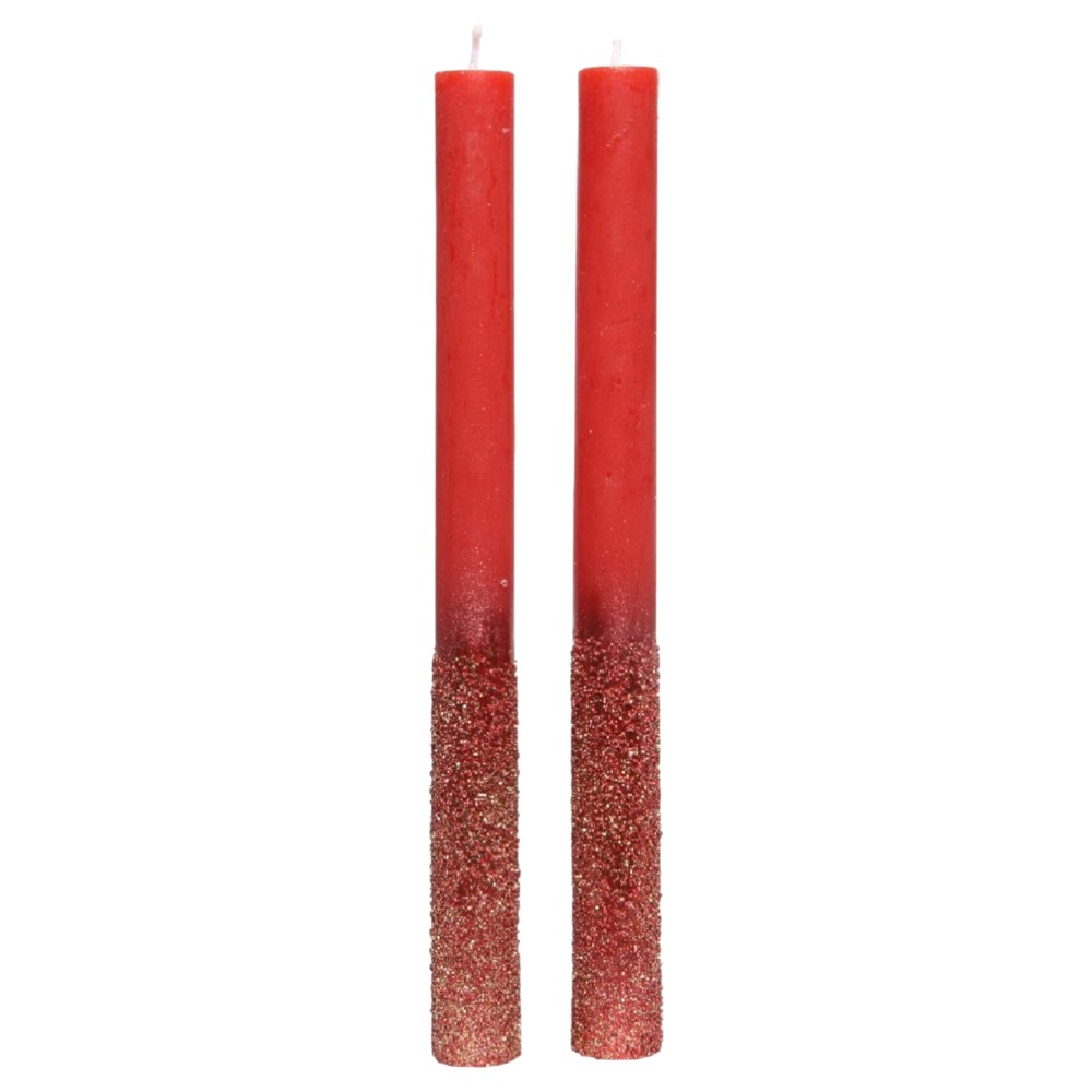 Decorative candle with Christmas motifs, red color with glitter, D2.2xH25 cm