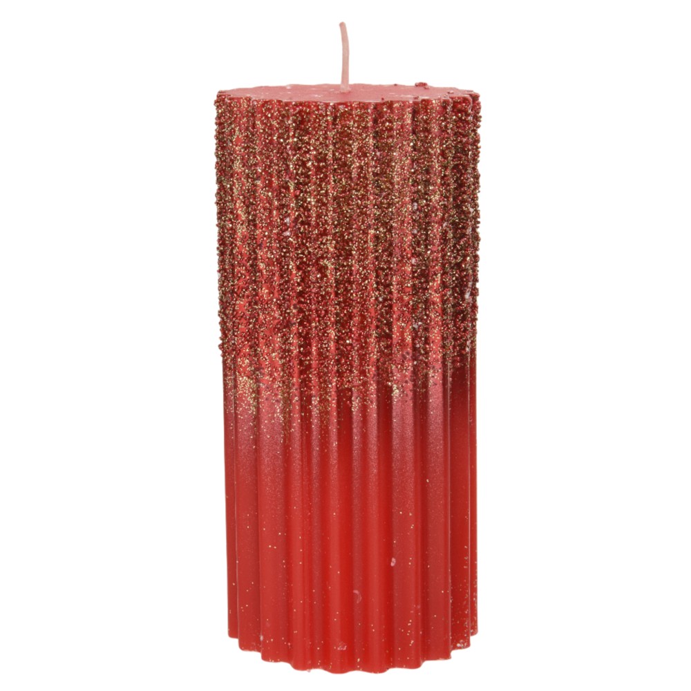 Decorative candle with Christmas motifs, red color with glitter, D7xH15 cm
