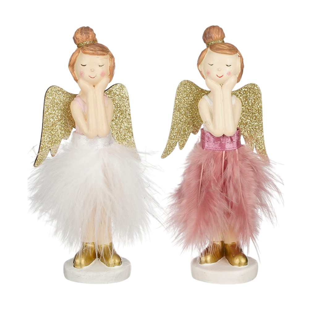 Decorative figure, angel, white color, pink color, L6.5xW4xH15 cm