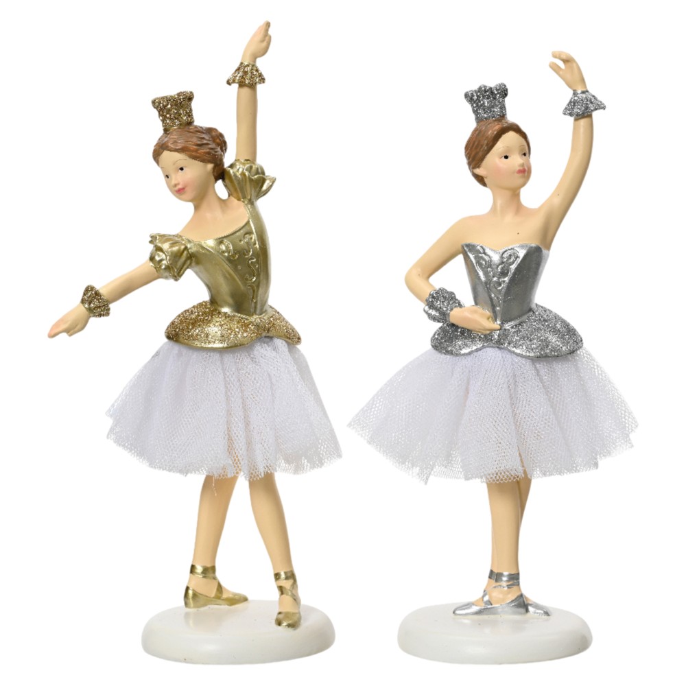 Decorative figure, ballerina, polyresin, white color with gold/silver, L5.7 x W5 x H16.7 cm