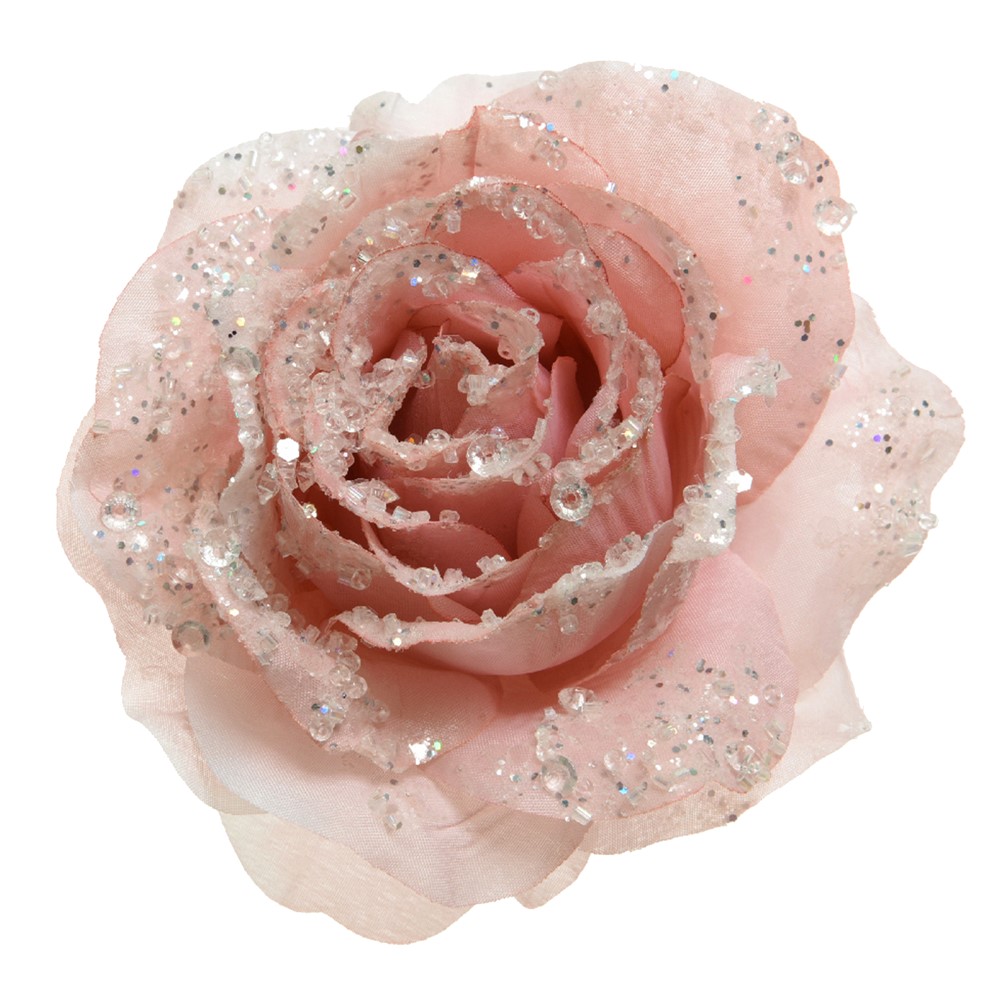 Decorative flower, polyester, blush pink, 14x8.5 cm