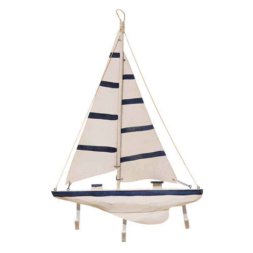 This decorative pendant is a great addition to any setting, bringing a rustic and natural touch to your space. A boat theme is a great choice to add a nautical or natural atmosphere to your home, living room, or wherever it will be placed. The materials used to create this pendant are wood, which gives an authentic and natural feel. White and blue colors offer a pleasing aesthetic choice and can easily match other decorations in your environment.