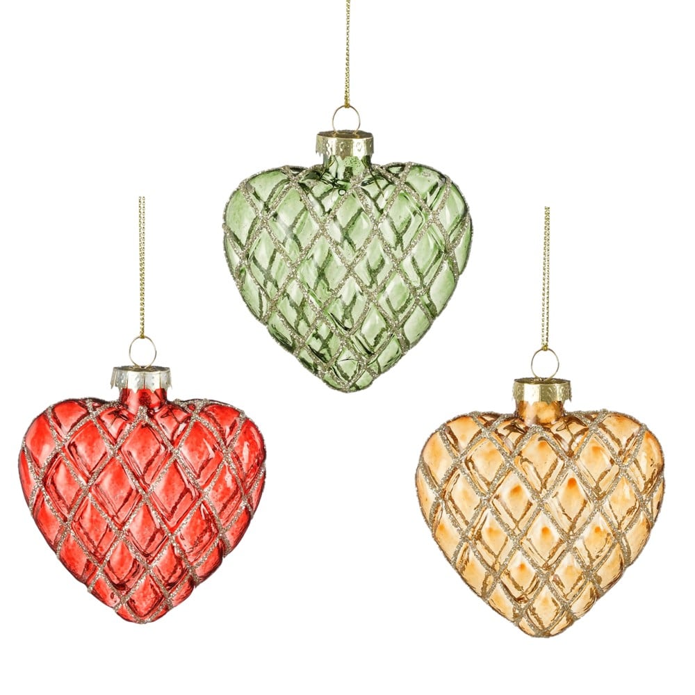 Decorative heart-shaped sphere, glass, 3 different colors, Dia.8 cm