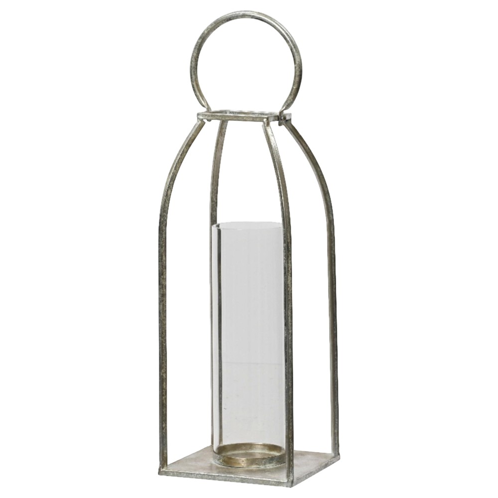 Decorative lantern, iron, silver, 15x15xH37 cm