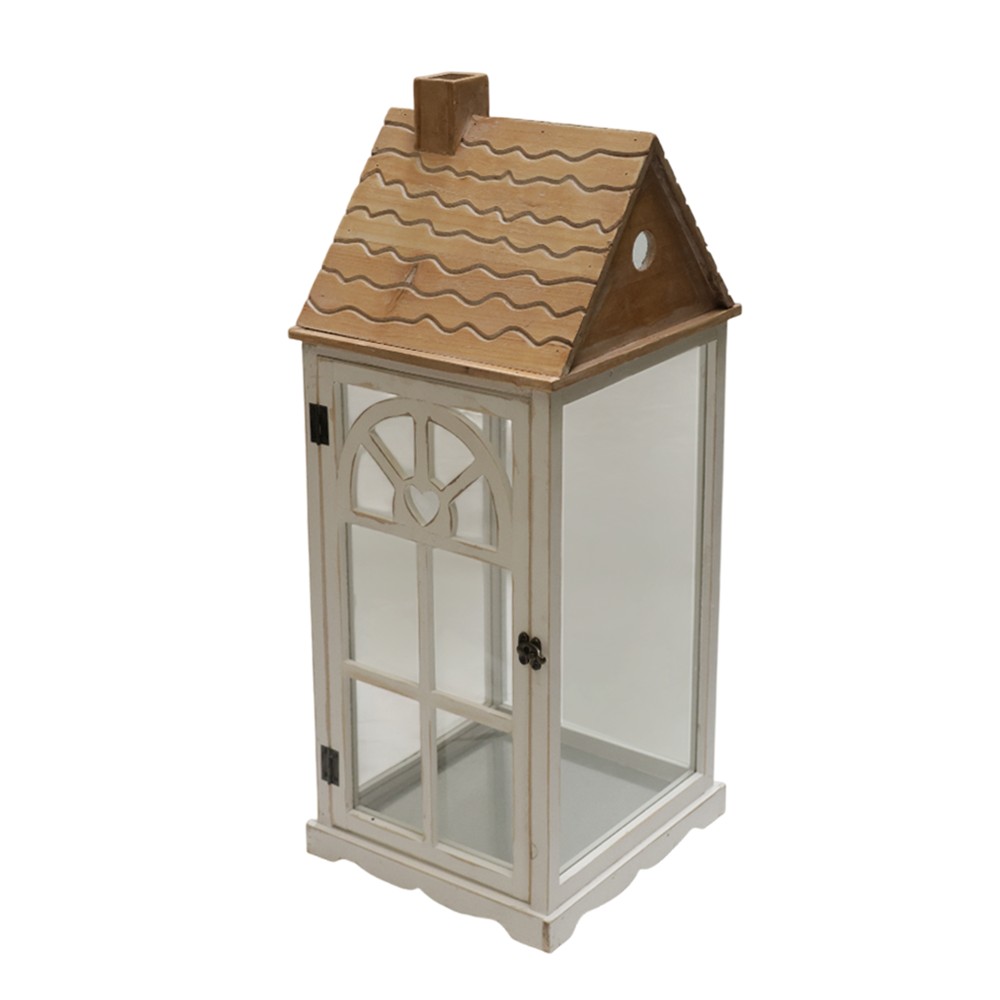 The decorative lantern is made of metal and wood, in white color that gives it a warm and elegant look. Perfect for decorating indoor or outdoor spaces.