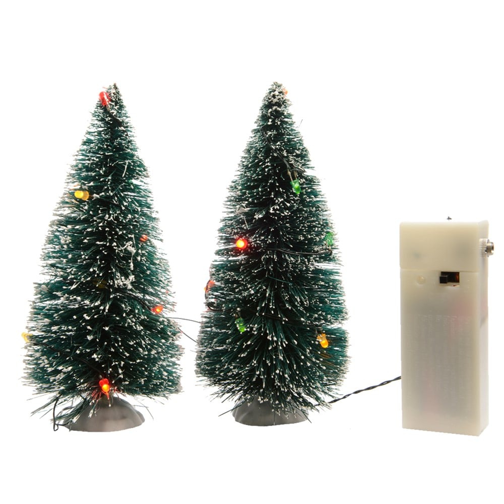 Decorative lighting, pine trees, quality workmanship and color create a pleasant contrast. Add style with glamorous decorative art to your miniature combinations. This piece will add character and warmth to any decor.