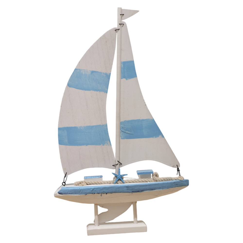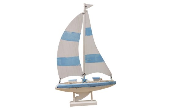 The decorative boat with an artistic work, comes to show your personality and to improve the appearance of every space of the environment where it will be placed. It will enhance a coastal-inspired living room when displayed on tables or display shelves. Designed from wood material and with its white/blue colors, it will be a central focal point in any environment.
