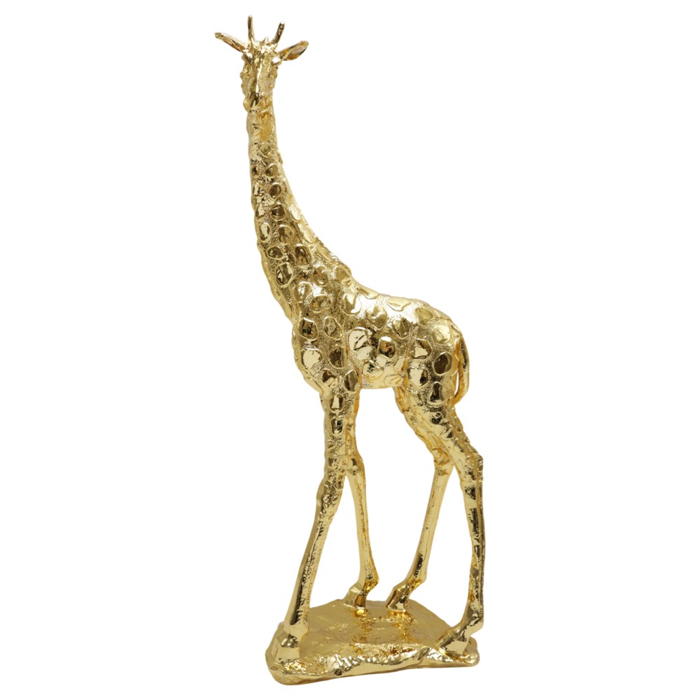 The decorative object "Giraffe", made of gold-colored metal, is a refined and elegant accessory that brings a sense of delicacy to any environment. This stylized design of the giraffe, in dimensions of 16x45 cm, gives you the opportunity to create interesting visual compositions or to place it separately as special decorative elements. The gold color adds a luxurious and bright look, reflecting light and creating a warm and sophisticated atmosphere in the spaces where it is placed. The metallization of the material gives it a modern and elegant aspect, which can be easily combined with different furnishing styles, from the simplest to the most modern and industrial. This object is suitable for placing on tables, shelves, consoles, or even in large spaces such as living rooms, lobbies and offices decorated with a special style. "Giraffe" is a wonderful accessory that will add character and taste to your environment, giving it a special and artistic accent.
