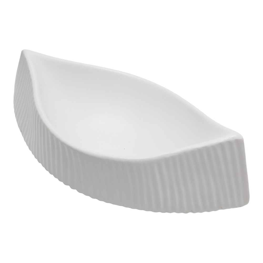 The decorative object made of white porcelain, measuring 37x12.5xH18 cm, is an elegant and minimalist accessory that adds calm, purity and refinement to any environment. With smooth lines and an elongated shape, this object represents a simple contemporary style but with a strong visual presence. The white color gives it a clean and neutral look, making it suitable for combination with any color palette and furnishing style – from modern minimalist to classic or Scandinavian. The porcelain material offers high quality, durability and a soft, shiny finish that naturally reflects light. This decorative object is ideal for placing on center tables, bedside tables, consoles or decorative shelves, functioning as an aesthetic focal point. It can be used as part of a decorative composition or stand alone, adding a clean, elegant and harmonious touch to the space.