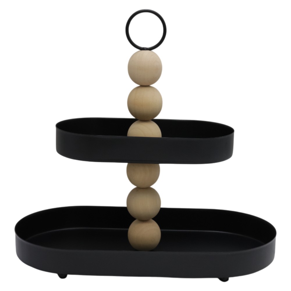 The combination of black metal and wood creates a balanced contrast between materials, making this stand ideal for modern and minimalist environments. The black metal frame offers durability and an elegant look, while the natural wood structure adds warmth and texture. It is used to display small decorative objects such as figurines or souvenirs. Its dimensions make it suitable for placing on tables, bedside tables and shelves. Thanks to its simple but effective design, this decorative object can be easily combined with other decorative elements and adds a sense of organization and style to the environment.