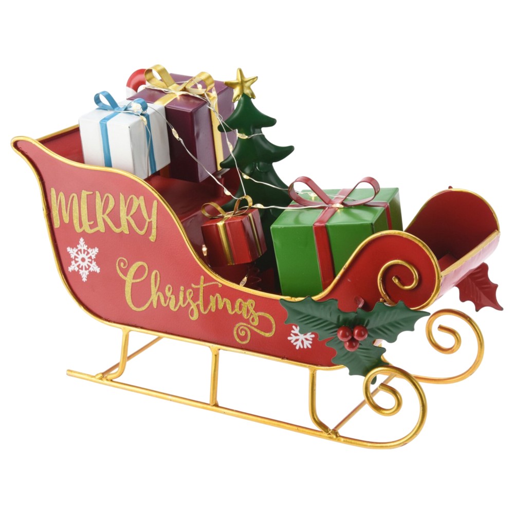 Decorative object with lighting, Sleigh with gifts, 3xAA batteries