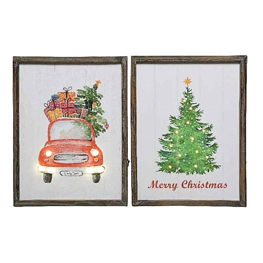 Decorative painting with LED lighting, 3.7x30x40cm, with batteries.