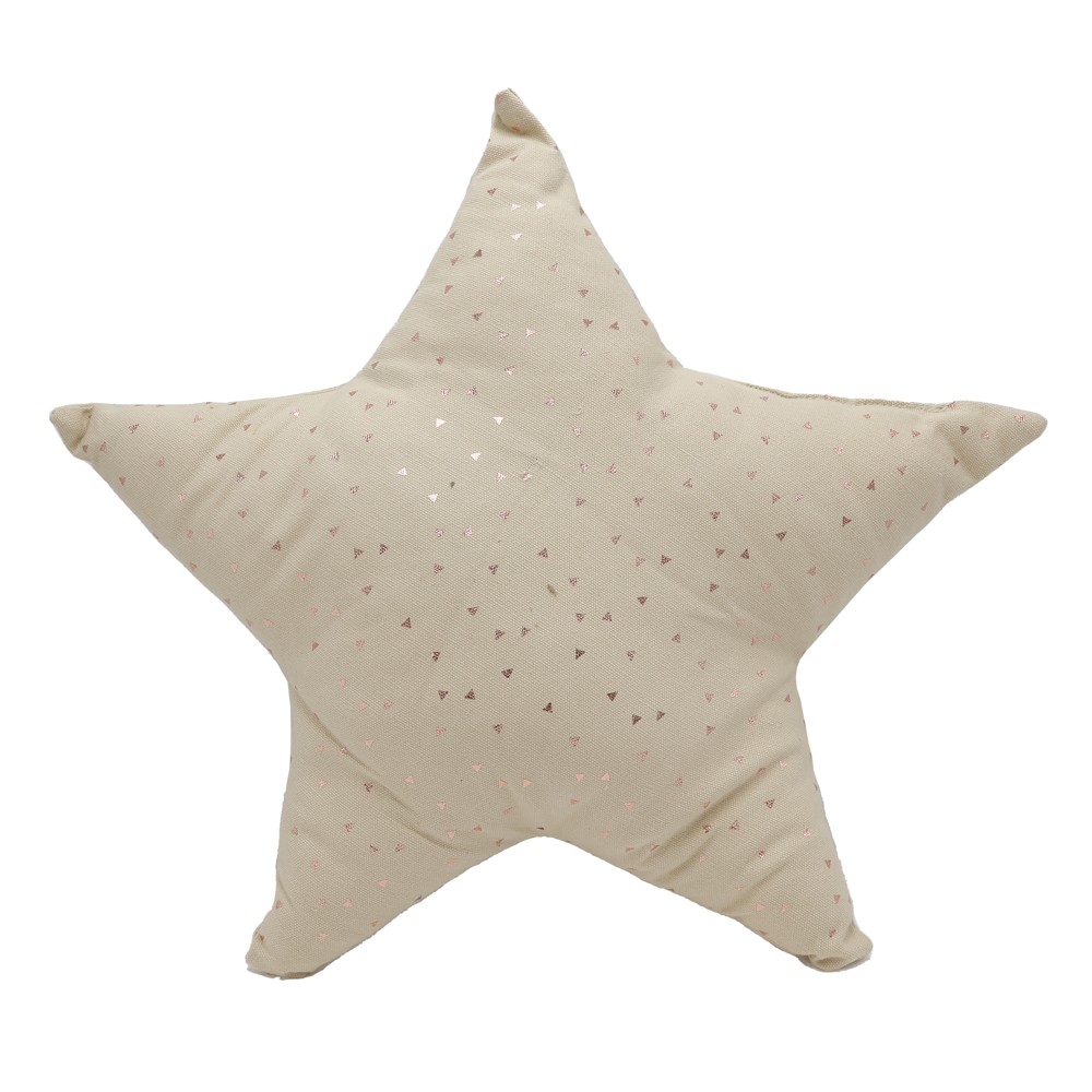Decorative pillow for children's room in the shape of a star, made of soft plush material in beige color with filter filling in the inner part.