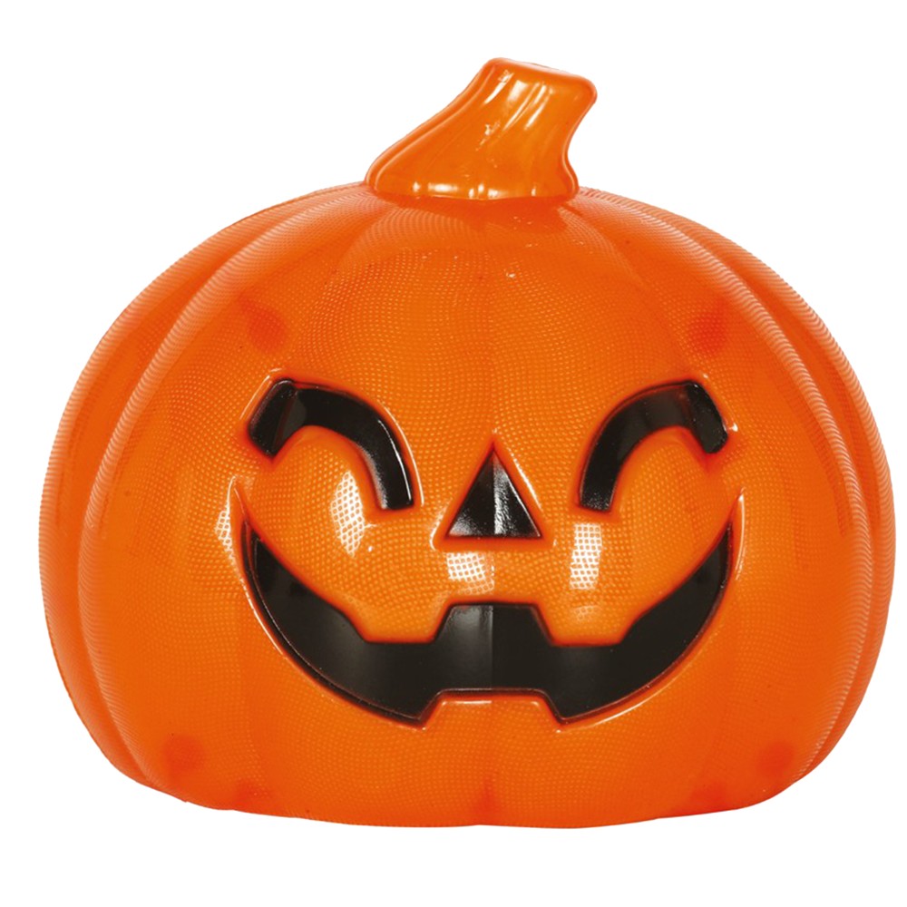Decorative pumpkin with light. Made of plastic material, this pumpkin has a size of 10 cm. It is used to decorate various premises during Halloween.