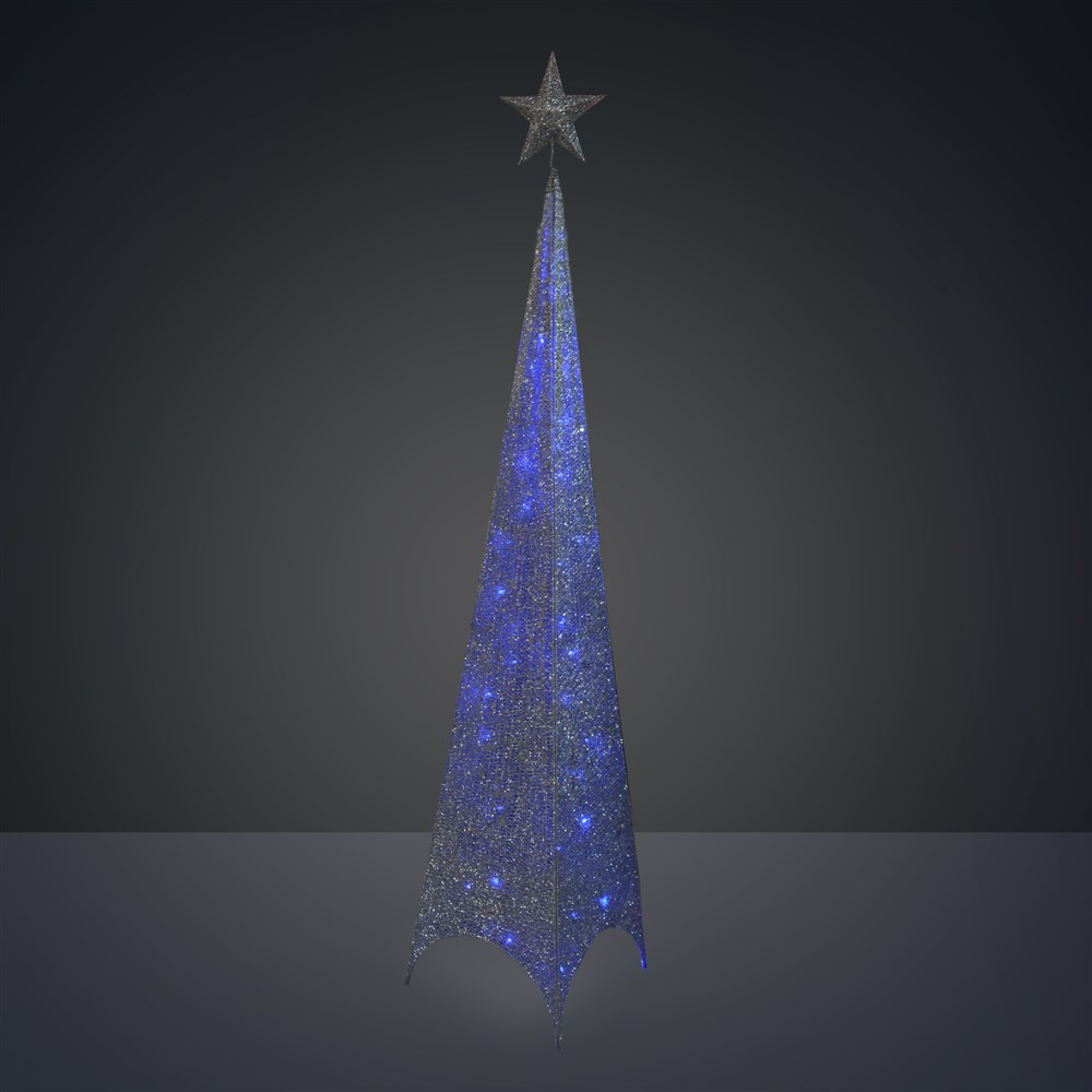 Decorative pyramid with LED lights, 3000 K, silver color 137x28cm, IP44