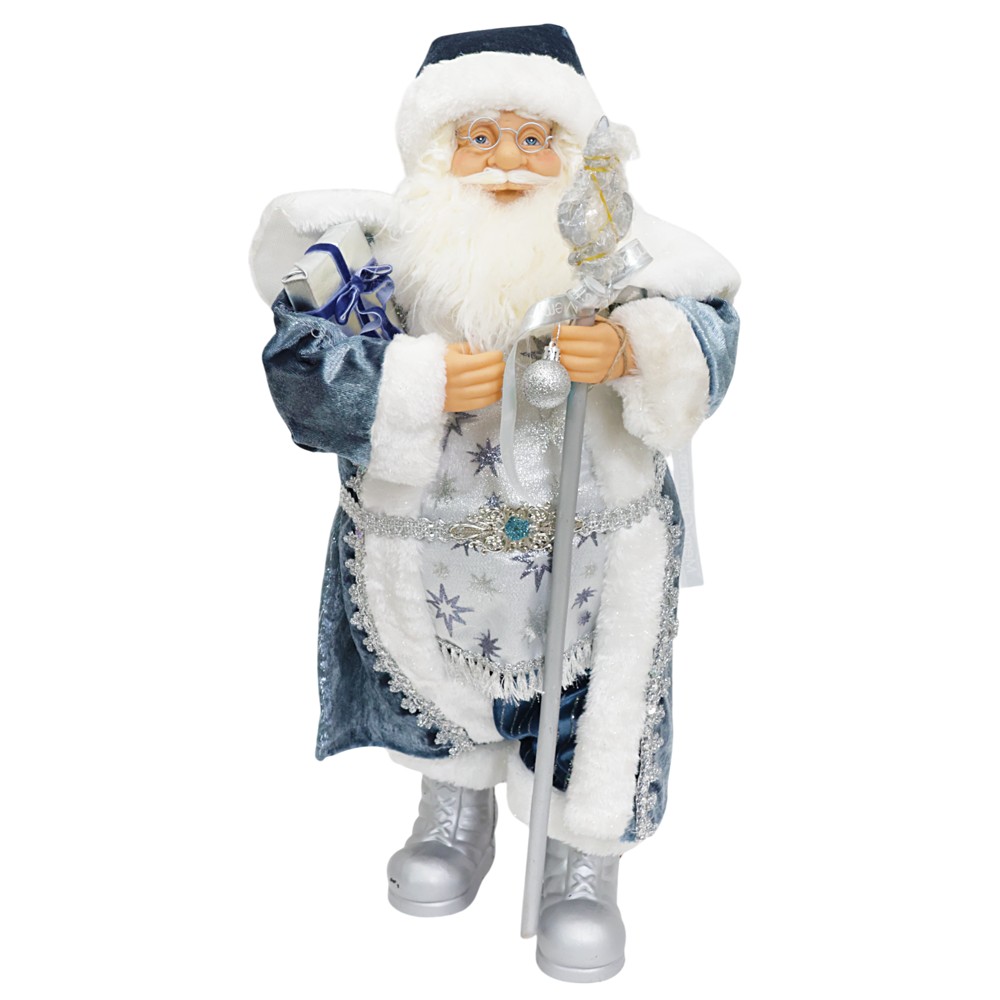 Decorative Santa, silver/blue color, polyester, 60 cm