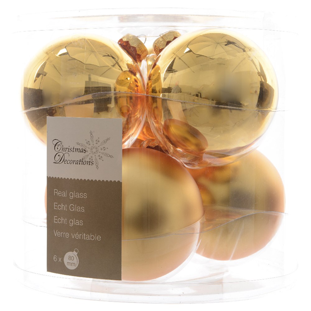 Decorative sphere, glass, gold, dia 8 cm, 6 pc