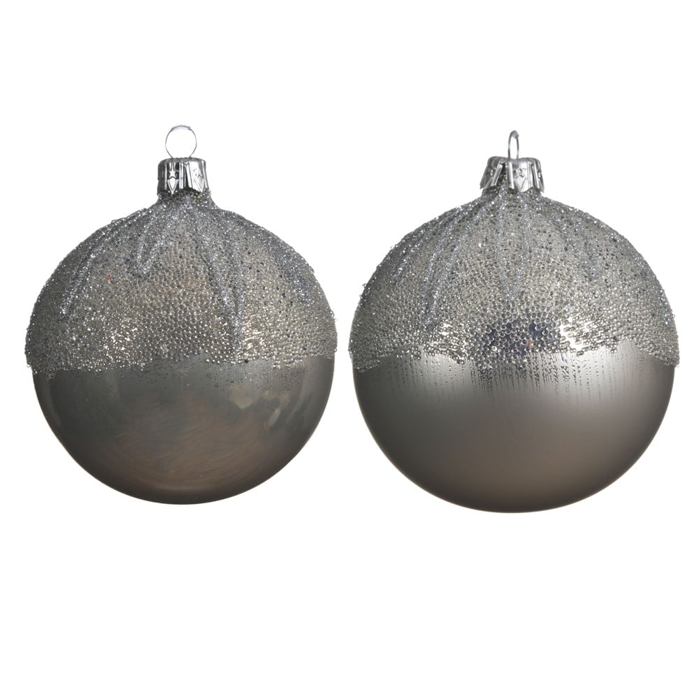 Decorative sphere of grey color glass with a diameter of 6 cm. This decorative accessory can be used to decorate the New Year tree, adding the magic of the holidays to your festive environments of the end of the year.