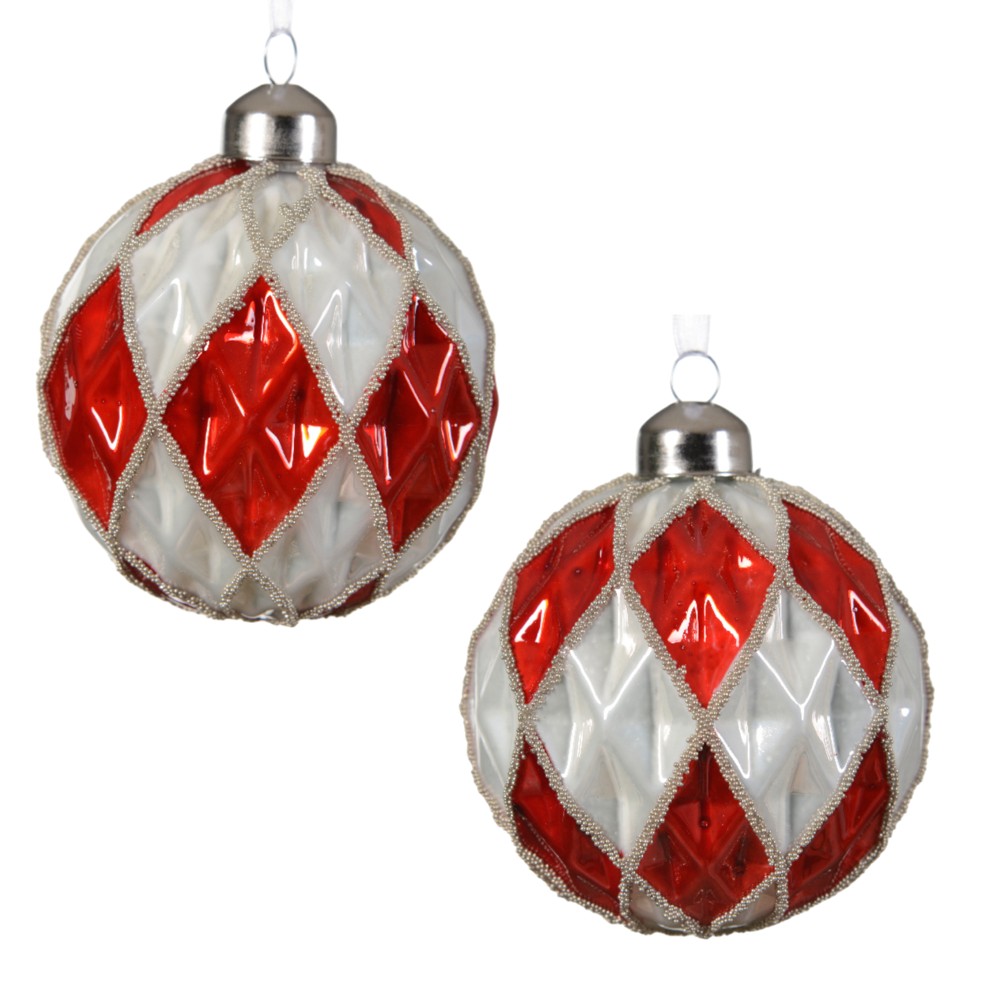 You're reviewing:Decorative sphere, glass, red color with white, D8 cm